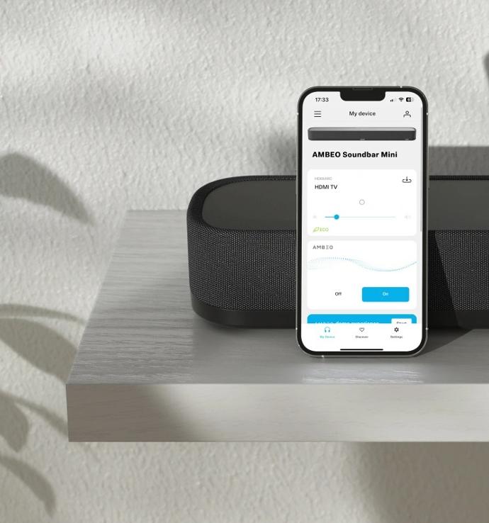 Ứng dụng điều khiển thông minh (Smart Control App) và giao diện web trực quan đảm bảo trải nghiệm dễ dàng, bao gồm nhiều cài đặt âm thanh, EQ cùng nhiều chức năng khác nhằm tối ưu hoá AMBEO Soundbar Mini.